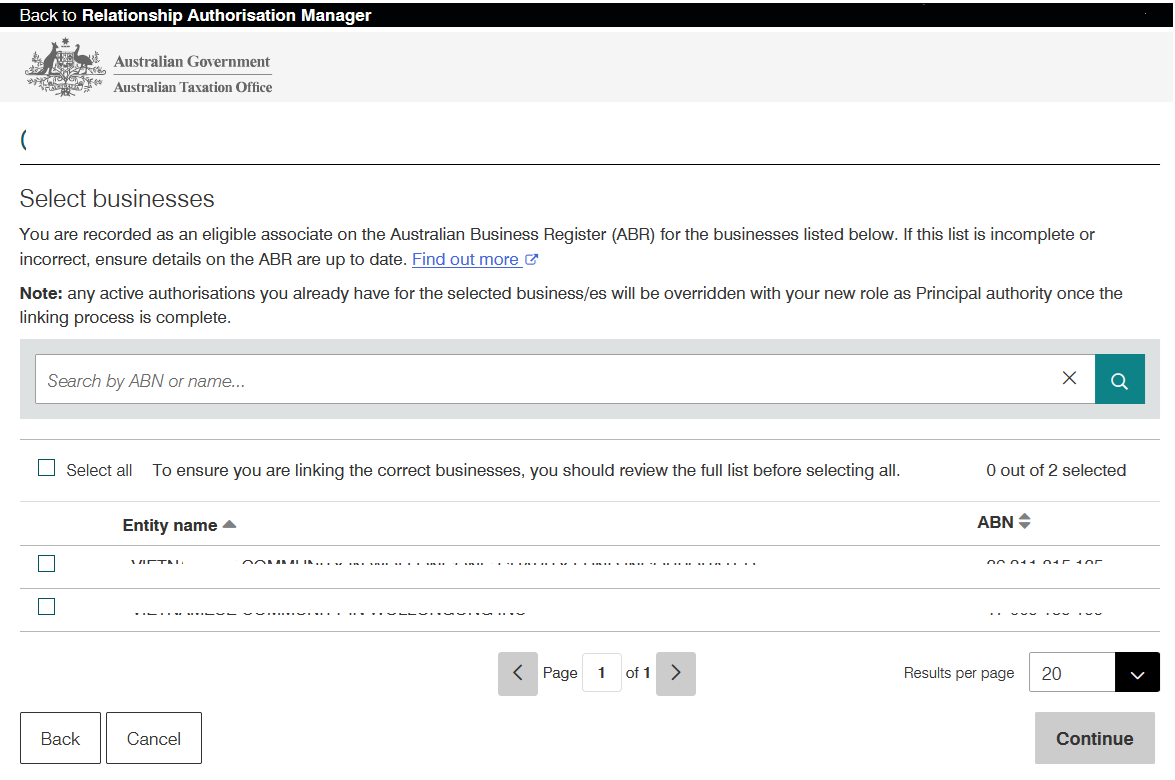 - you must have principal authority position your business listed on the ABR - if unsure, check with Teresa.