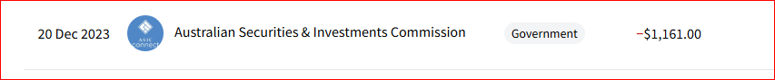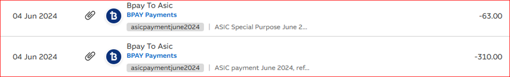 - Bpay - It will appear as AUSTRALIAN SECURITIES & INVESTMENTS COMMISSION