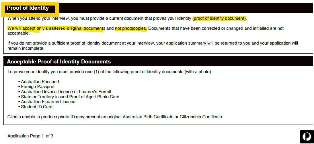 She offered no apology for refusing to proceed with my application on the basis that Auspost only accepts original documents (which was wrong)