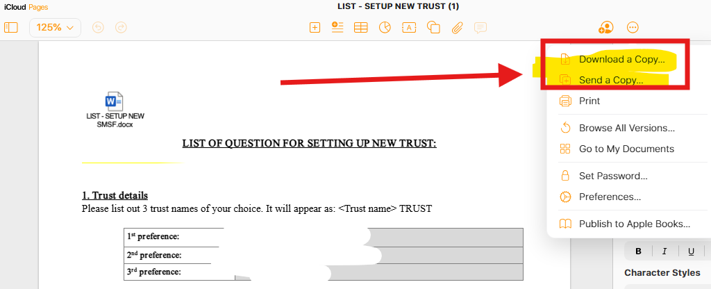 and then select either DOWNLOAD A COPY, or SEND A COPY